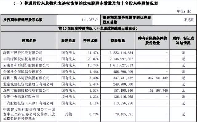 截至2025年三季度末,国信证券共有11.1万户普通股股东,其中,深圳市投资控股有限公司(简称“深投控”)持有33.53%股,为第一大股东,持股5%以上的股东还有2家,除了华润信托持有的20.87%股份外,云南合和(集团)股份有限公司持有16.77%股份。